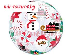 Круговерть новогодних персонажей и рисунков собраны в одном шаре с надписью MERRY CHRISTMAS. Шар выполнен из эластичного пластика. В солнечном свете шар похож на большой мыльный пузырь. Рекомендуется надувать гелием до полного распрямления складок. Упакован в красочный пакет, с цветным изображением шара.
