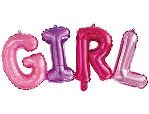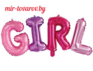 Набор из трёх объёмных фигур в форме букв: GIRL. Шары изготовлен из тонкой миларовой пленки фольга на полиэтиленовой основе) и имеют клапаны. При надувании используется только воздух. Упаковка содержит 4 шара, трубочку для надува и ленту. Буквы можно прикрепить к стене за хвосты, а также можно собрать буквы в гирлянду с помощью входящей в комплект ленты.