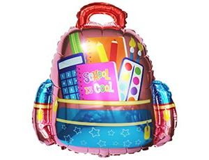 Сложная, объемная фигура в форме забавного школьного рюкзака с надписью School is cool (Школа - это круто). Рекомендуется наполнять гелием. Имеет встроенный клапан - что упрощает надувание. Тонкая миларовая (фольга на полиэтиленовой основе) пленка позволяет шарам не сдуваться от недели до одного месяца. Упакован в красочный пакет, с цветным изображением шара, что позволяет выставлять товар в ненадутом виде. Размер шара 64x55см.