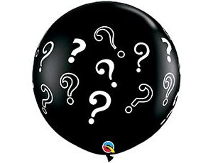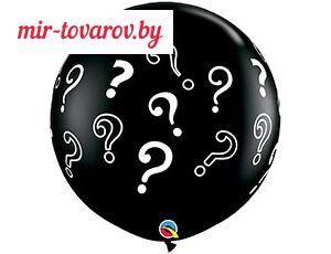 Высококачественный шар из натурального латекса. Цвет - чёрный. Шары с пятисторонним - круговая печать, шелкографическим рисунком в виде знака вопроса. Популярен для празднования BABY SHOWER, когда пол ребёнка ещё неизвестен. Предназначен для розничной продажи воздушных шариков.