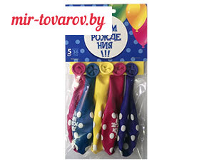 Набор шаров из натурального латекса. 5 шаров с шелкографическим рисунком на тему "С Днем Рождения Горошек" в упаковке с хедером ЋВесёлая Затея#Л - идеальное решение для продажи воздушных шариков, в магазине самообслуживания. |