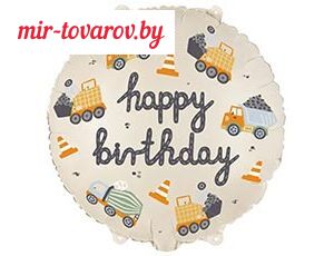 Круглый фольгированный воздушный шар Строительные машины, микс цветов, размер до надувания примерно 45 см (18''), размер после надувания ок. 35 см (14''). Наполните воздухом и гелием. В комплект входит соломинка.