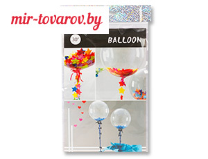 | Круглый прозрачный шар из эластичного пластика. Надувается гелием или воздухом. Упакован в красочный пакет, что позволяет выставлять товар в ненадутом виде. В основном применяется для создания композиций "шар-в-шаре". Шар без клапана. Инструкция: для начала шар нужно бережно раздуть воздухом (желательно, с использованием компрессора): поток воздуха должен быть направлен на шов шара для того, чтобы избежать передува одной из сторон шара. Затем сдуть шар. Только после этого можно надувать этот шар гелием. Завязывать шар только с помощью шара ШДМ (использование ленты недопустимо, т.к. шар может быстро сдуться). Шар, надутый гелием, летает от 6 дней и более. |