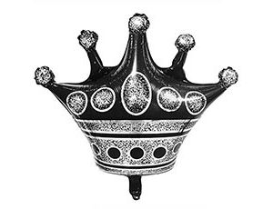 Сложная, объемная фигура в форме короны черного цвета. При надувании рекомендуется использовать гелий. Имеет встроенный клапан - что упрощает надувание. Тонкая миларовая (фольга на полиэтиленовой основе) пленка позволяет шарам не сдуваться от недели до одного месяца. Упакован в красочный пакет, с цветным изображением шара, что позволяет выставлять товар в ненадутом виде. Размер шара 90x100см.