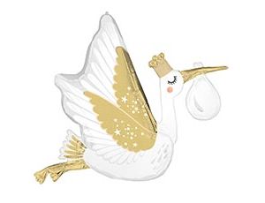 Сложная, объемная, фольгированная фигура в форме аиста. При надувании рекомендуется использовать гелий. Имеет встроенный клапан, что упрощает надувание. Тонкая миларовая (фольга на полиэтиленовой основе) пленка позволяет шарам не сдуваться от недели до одного месяца. Фольгированный шар продается ненадутым, в индивидуальной, красочной упаковке. Размер шара: 35"/88см ш x 28"/71см в.