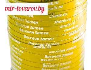 Декоративная лента с надписью "Веселая Затея sharik.ru", используется для завязывания шаров, в декоре помещений, оформлении подарков и настольных композициях.