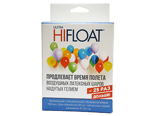 Компактный флакон с уникальным полимерным составом, позволяющим удерживать гелий в латексном шаре до нескольких недель, шар обрабатывается изнутри. Поставляется в индивидуальной упаковке в комплекте с дозатором и инструкцией на русском языке. Hi-Float нетоксичен, не горюч, не является окислителем, не раздражает кожу, биоразлагаем, растворяется в воде. Он абсолютно безопасен для здоровья и не наносит вреда окружающей среде. Не испаряется и не выделяет никаких токсинов! Производитель заявляет, что количество полимерного клея в данном объеме рассчитано для обработки до 25 латексных шаров размером 11"/28 см или для обработки 50 штук латексных шаров размером 9"/23см. Подробнее: https://www.youtube.com/watch?v=M3xAR9tIjj4
