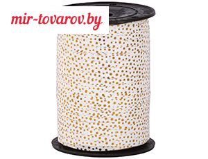1302-1164 Лента 5ммХ230м.белая рис Горошек золотой
