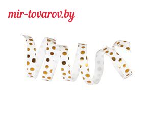 → 1302-1164 Лента 5ммХ230м.белая рис Горошек золотой