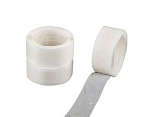 Двухсторонние клейкие кружочки, которые позволяют надежно скреплять шары между собой или прикреплять к различным поверхностям. Диаметр круга - 11-12мм. Длина рулона - 250м. В нем примерно 160-165 точек.