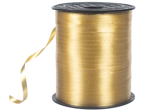Золотая оформительская лента, используется для завязывания шаров, в декоре помещений, оформлении подарков и настольных композициях.