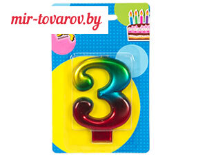 → 1502-3767 Свеча -цифра "3" Радуга металлик 8см/V