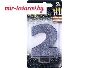 → 1502-4660 Свеча -цифра "2" Черная глиттер 8см/A