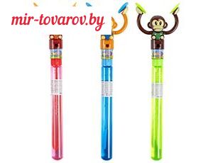 Мыльные пузыри с игрушкой в виде обезьянки с музыкальными тарелками. При нажатии на рычажок обезьянка хлопает руками имитируя игру на тарелках . Яркий дизайн и чудесная игрушка заинтересует с первого взгляда. А мыльные пузыри в палочке - это любимое всеми развлечение! Они парят в воздухе, переливаясь всеми радужными красками, и всегда вызывают улыбку. С ними лето станет еще ярче и веселее! Объём мыльного раствора в палочке - 65мл. Размер палочки 33см.