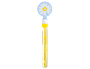 Палочка с мыльными пузырями, украшенная трещоткой с изображением ромашки. Объем флакона 70 мл. Просто проведите палочкой по воздуху, и за ней потянется шлейф радужных мыльных пузырей.