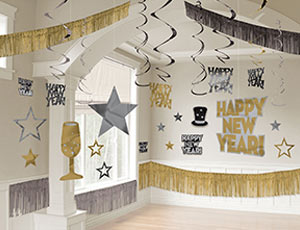 Большой набор для оформления новогоднего зала в стиле Гэтсби, Оскар и Голливуд - 28 предметов. В комплект входят гирлянда-бахрома черного, золотого и серебряного цветов, спирали простые и с поздравлением с новым годом, а также несколько блестящих баннеров. Дополнительно прилагается катушка лески 15 метров для крепления декорации.