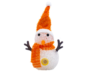 Забавный светящийся снеговик в колпачке, с шарфиком. Работает от батареек (входят в комплект). Высота 17см.