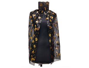 Черная карнавальная накидка с изображением золотой тыквы станет прекрасным нарядом на Хеллоуин. Рост 125-135см.