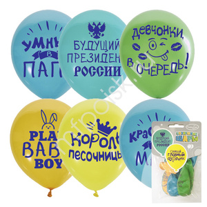 → M 12"/30см Набор шаров П+Д (шелк) 2ст. рис Хвалебные для мальчиков 5шт