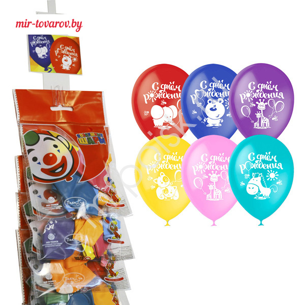 → M 12"/30см Пастель+Декоратор (шелк) 1 ст. рис С Днем Рождения 5шт