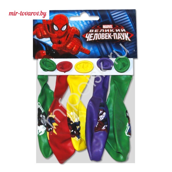→ M 12"/30см Упаковка с хедером Х-113 П+Д (шелк) 1 ст. 4 цв.рис Марвел цветной Человек-Паук 5шт