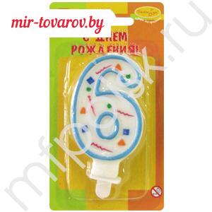 → MC Свеча Цифра 6 Голубое Конфетти