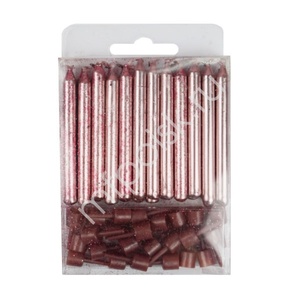 → MC Свечи Rose Gold с блестками 24(12+12)шт с держателями 6см