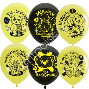 → Набор шаров 2 ст. рис Мишка Плохиш Пожелания 25шт 12"/30см