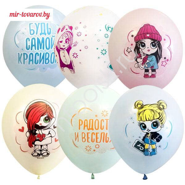 → Набор шаров Macaroons ассорти рис. Baby Girls 5 шт 12"/30 см