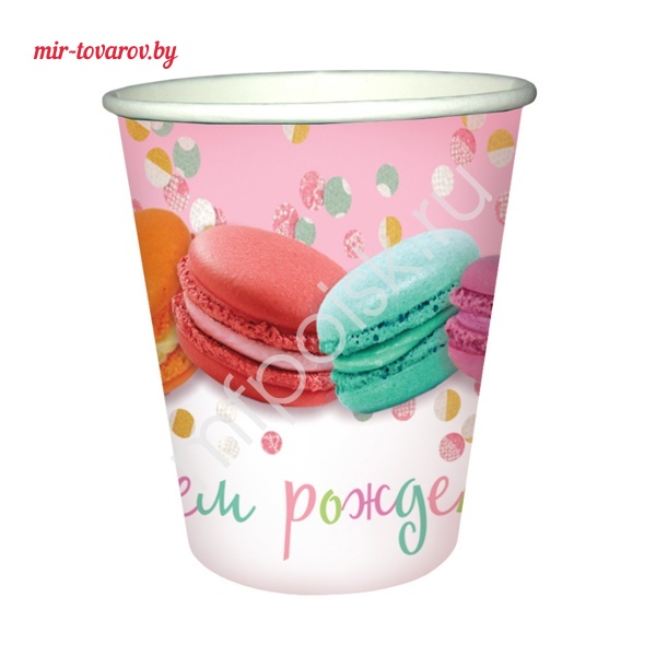 → P 200мл Стаканы бумажные С Днем Рождения Макаруны 6шт