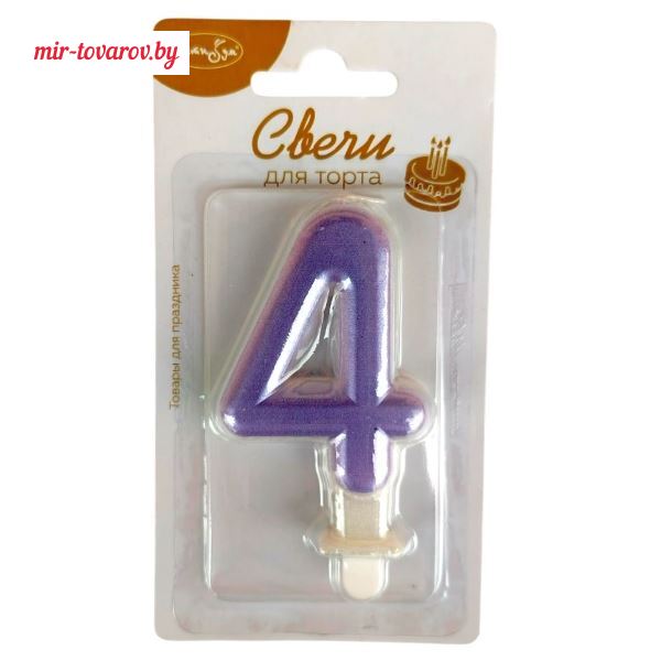 → Свеча Цифра 7,5см перламутр с держателем 4