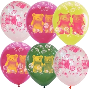 Воздушные шары ассорти рис. Мармеладные мишки 5шт 12"/30см
