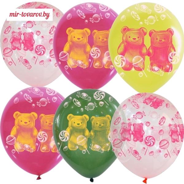→ Воздушные шары ассорти рис. Мармеладные мишки 5шт 12"/30см