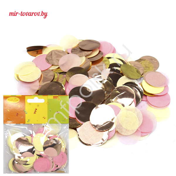 → Y Конфетти бумага/фольга Круги золото/розовый/шампань 2,5см 14гр