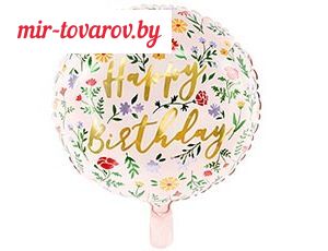 | Круглый фольгированный шар с золотой надписью HAPPY BIRTHDAY. Надувается как гелием, так и воздухом. На упаковке размер шара указан в надутом виде. |
