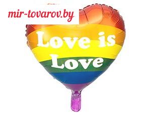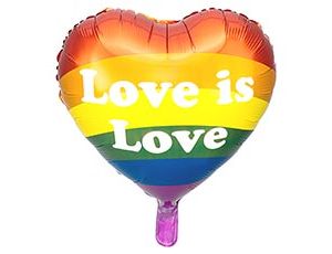 | Матовый фольгированный шар в форме сердца, цвет радуги с белой глянцевой надписью Love is Love, размер до надувания ок. 45 см (18''), размер после надувания ок. 35 см (14''). Надувается гелием. |