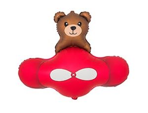 Большой объемный фольгированный шар в форме мишки, летящего в самолете. При надуве рекомендуется использовать гелий. Имеет встроенный клапан -что упрощает надувание. Поставляется в красочной упаковке с цветным изображением шара, благодаря чему можно выставлять товар в сдутом виде. Размер шара в ненадутом виде 94(W)*90(H)cm; размер в надутом виде 83(W)*72(H)cm. Тонкая миларовая (фольга на полиэтиленовой основе) пленка позволяет шарам не сдуваться до 7 дней.