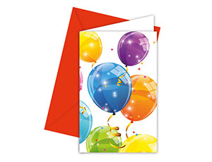 | В упаковке 6 красочных приглашений с конвертами. |