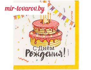 → 1502-4385 Салфетка С ДР Торт Праздничный 25см12штG