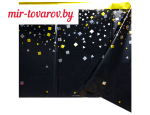 | Фольгированная скатерть черного цвета с блестящими конфетти, размер 130*180см. Используется совместно с другими элементами коллекции по дизайну (тарелки, стаканы, приборы и т.п.) как украшение стола или по своему непосредственному назначению. |