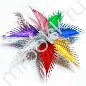 Объемная фигура из металлизированного тонкого пластика - форма снежинки. Фольгированные украшения идеально подходят для оформления помещения к новогодним праздникам.