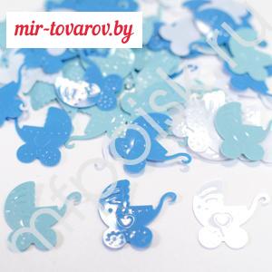 → Y Конфетти пластиковое Коляска голубая ассорти 14гр